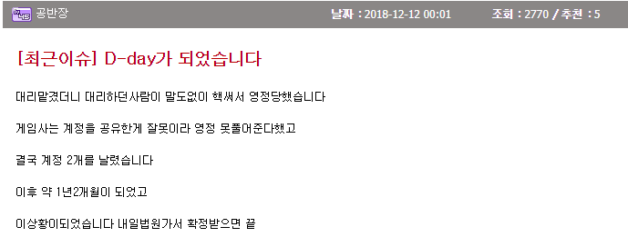 뭔 게임인데 계정 영정당한게 4천만원이나 받어