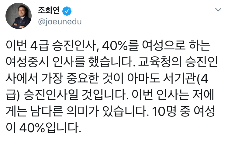 교육감자리도 물려놓고 여성으로 채우지그래..