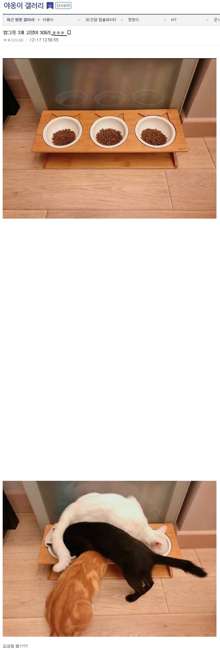 나란히 놨으니 나란히 먹을거라는 인간의 오만