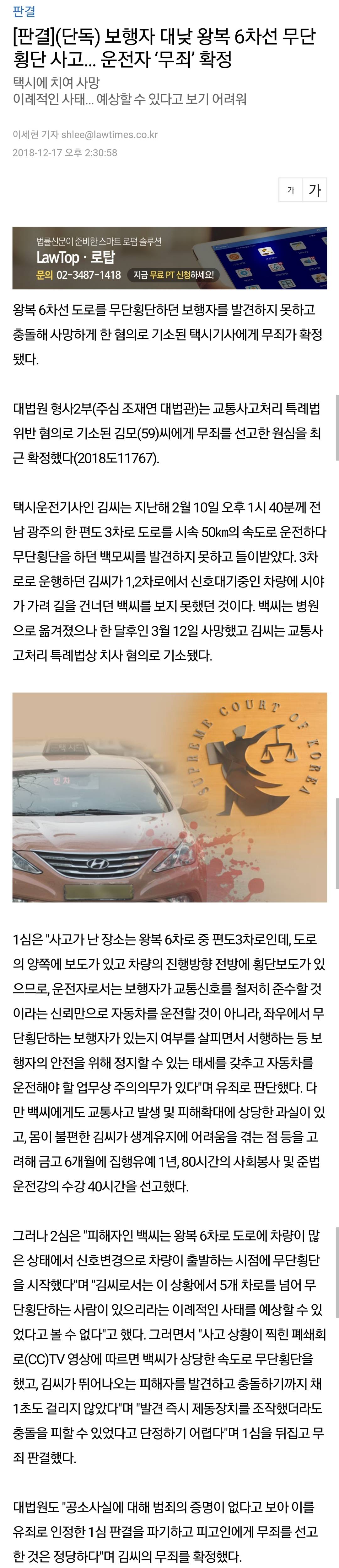 이런 판례가 슬슬 나오고 있으니 보행자도 법을 준수해야해