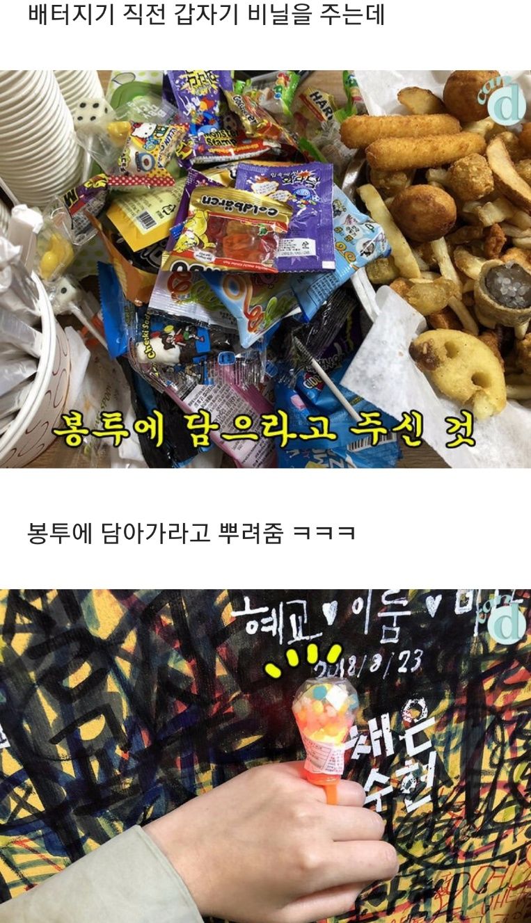 초코바 뿌릴때부터 범상치가 않다