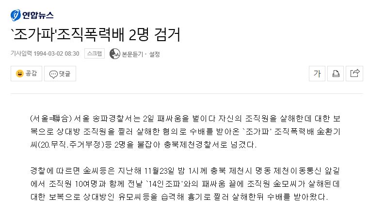 쓰라고 했지 그걸 중학교 떄까지 했다 혹시나 해서 옛날 기사 찾아보니 폭력조직 이름도 다 나오네 ㅋㅋ