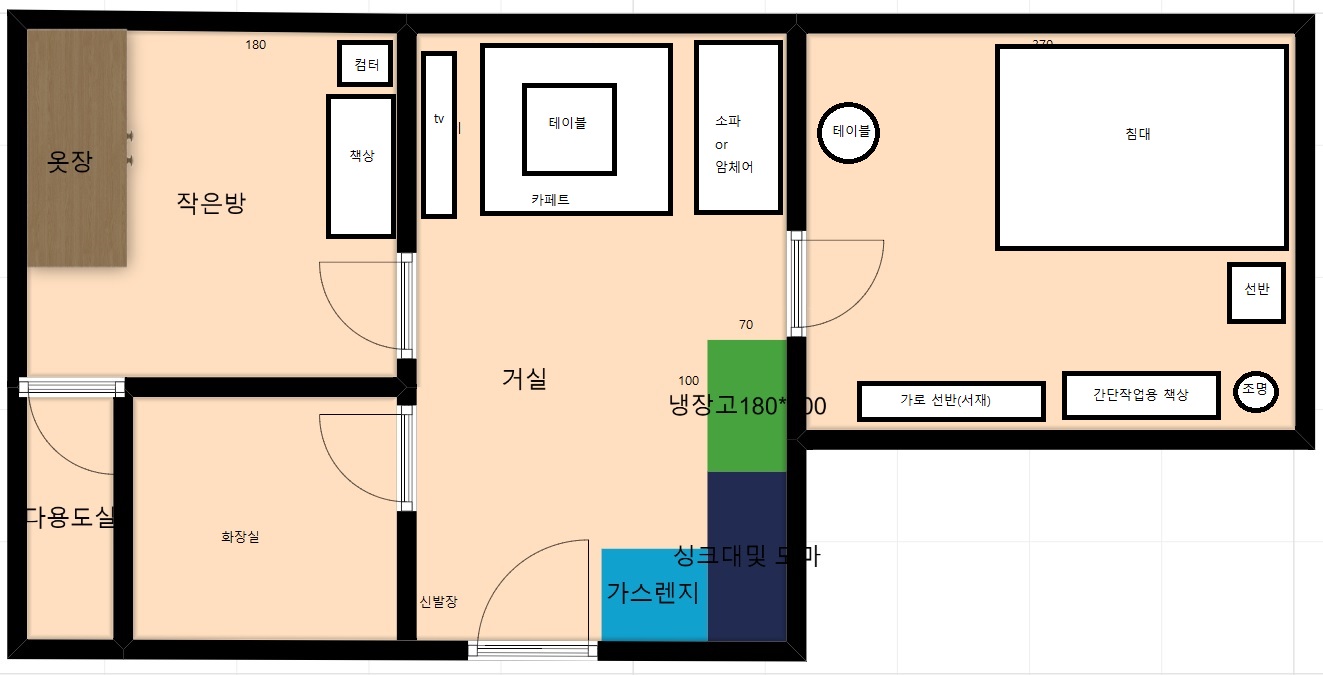 생각을 해봤는데 일단 작은방에 두고 생활하다가 불편하면 침실로 옮겨야겠다.