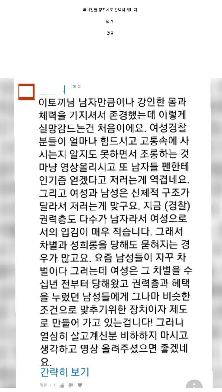 - 범죄자에게 붙잡혔던 여경은 심하게 폭행 당해서 고통을 호소함