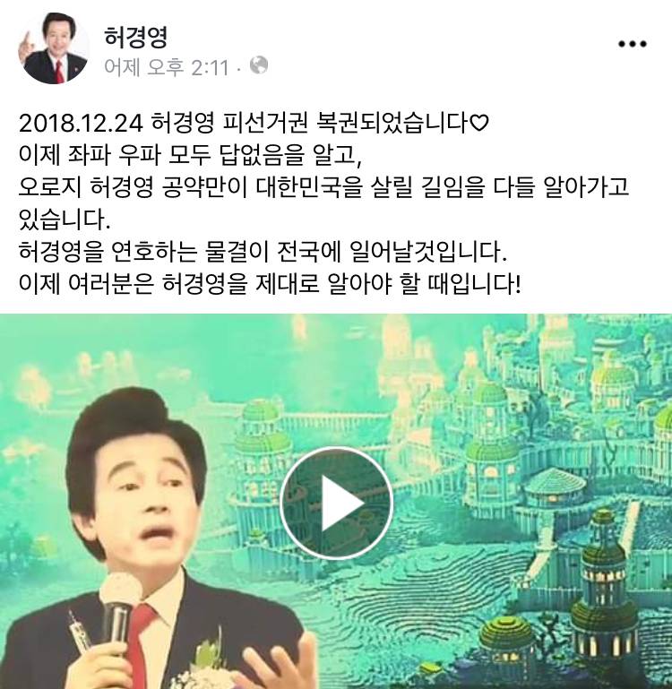 정동영 vs 이명박 때 난 허경영 찍었지 정말 그때 찍을놈 없더라