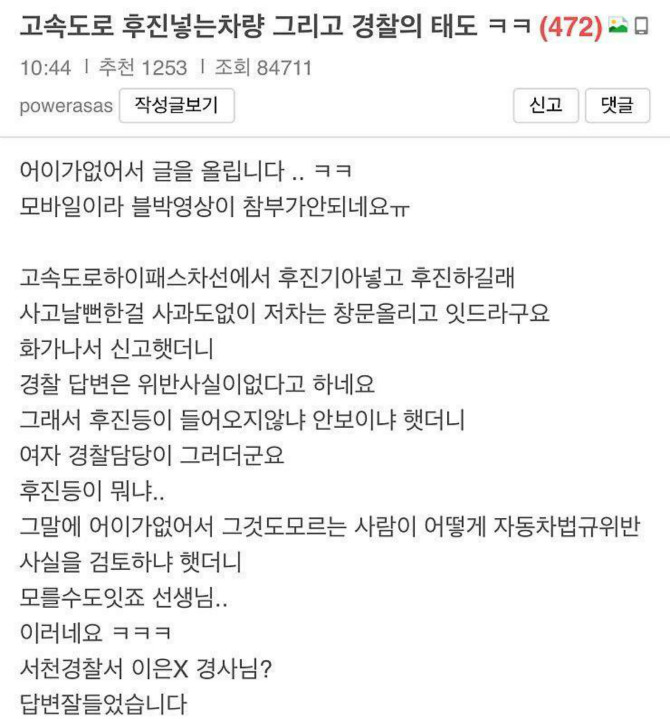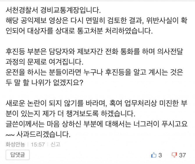 교통과 담당경찰이 블박영상도 제대로 못본거면 욕먹어도 싼거 아님?