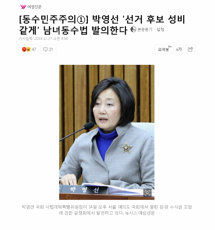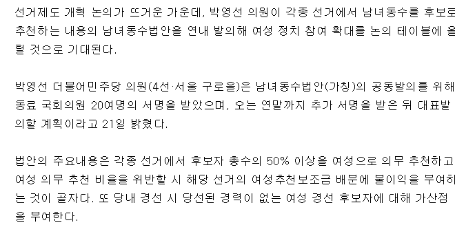 남녀동수로 할꺼면 세대비례, 지역비례도 하던가 ㅋㅋ 대가리에 총맞았나
