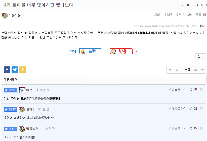이거내가 헬가글올린거랑 비슷한데 ㅋㅋㅋ 꿈에서 헬가머리안뜯었는데 자고있으니까 일어나서 해야지 했걸랑 꿈에서 정말깨서 헬가3번깨고잠