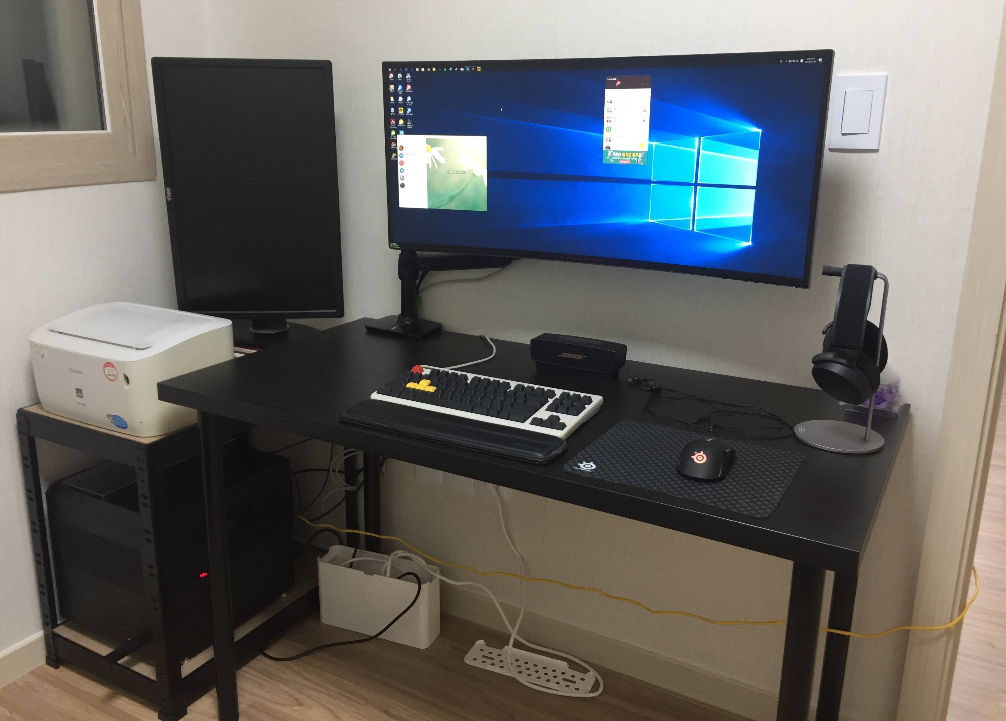 선정리 덜되도 너무 배치 이쁜데ㄷㄷ 모니터암에 피벗모니터 ㄷㄷ