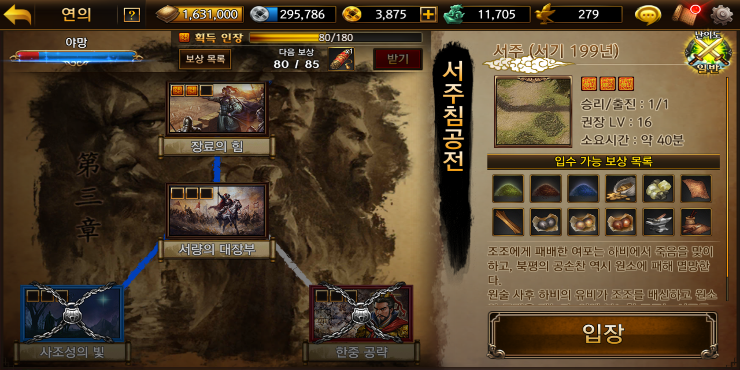 사건이나 공성전에나 쫌 얼굴 비추는 수준이라. 연의에서도 쓰려고 열심히 가상루트 타고 있음