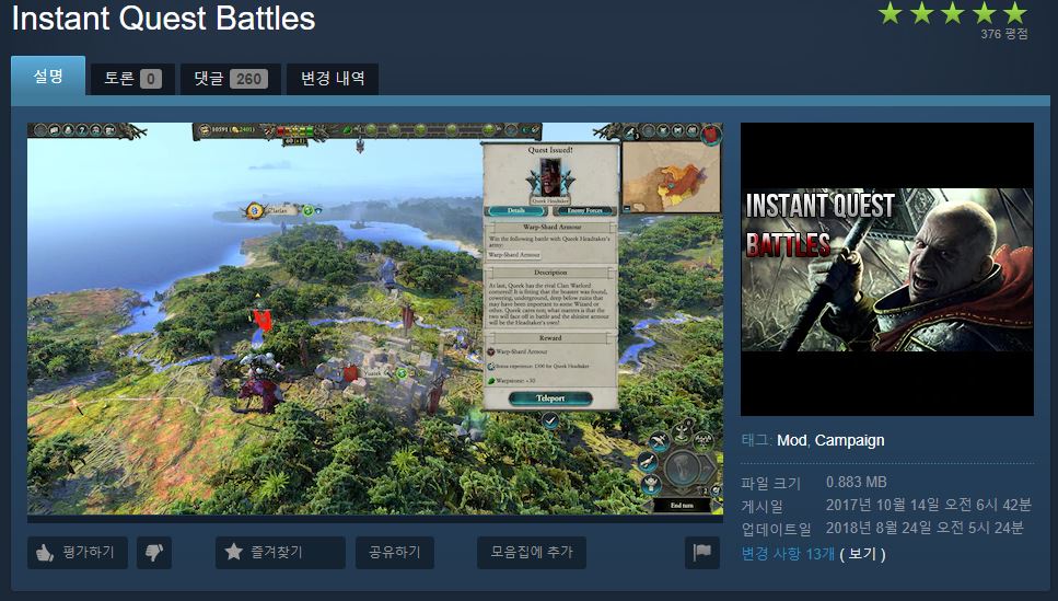 내 땅에서 군단의 이동속도가 빨라지는 모드로 적군단이 처들어왔을 경우