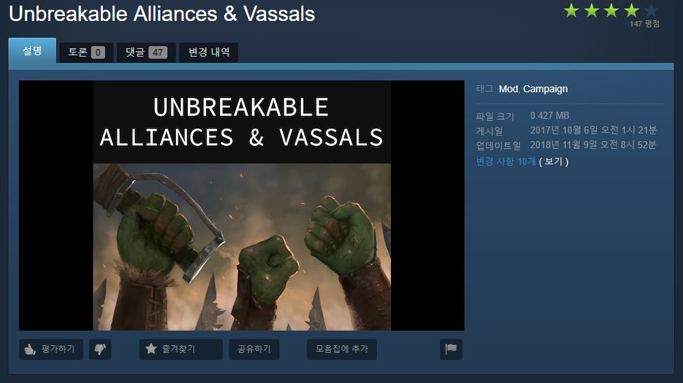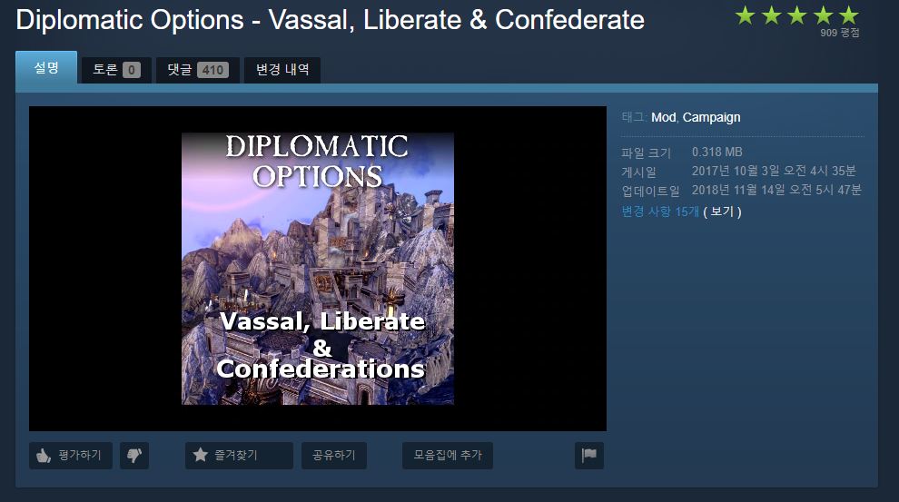 외교 개선 모드로 모든 종족에 대해 봉신과 해방, 연방이 가능하도록 해주는 모드임