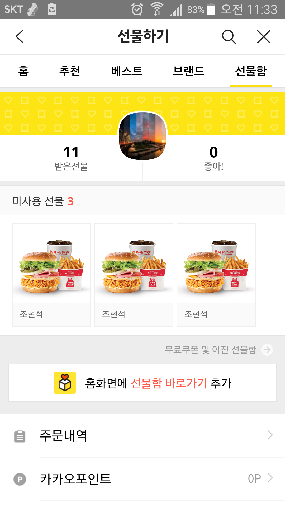 다 이체하고 날 위한 선물과 생활비만 남겨서 이벤트를 못할뻔 했는데