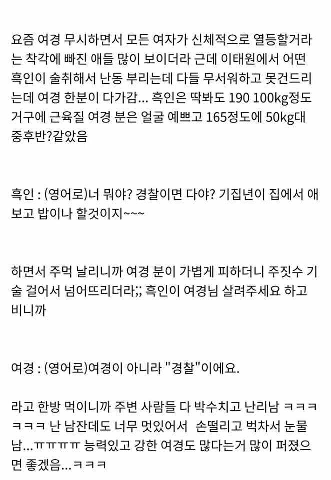 근데 그 여경이 예쁘다고? 이건 고추새끼 관점이군