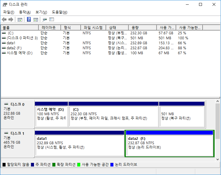 벗바 댓글보고 디스크관리 들어갔는데 검색해보니 차이 뜬다던데 안뜨고 걍 저리 나옴.