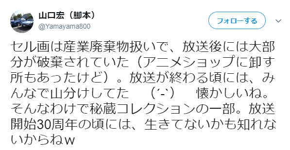 셀화는 산업폐기물취급당해서 방송 후에는 대부분이 파기되었다