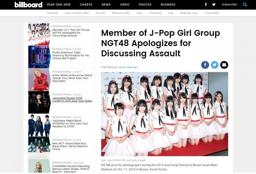 피해자가 사과하는 희대의 촌극이었던지라 일본을 넘어 빌보드까지 다뤄주는 일이 됨