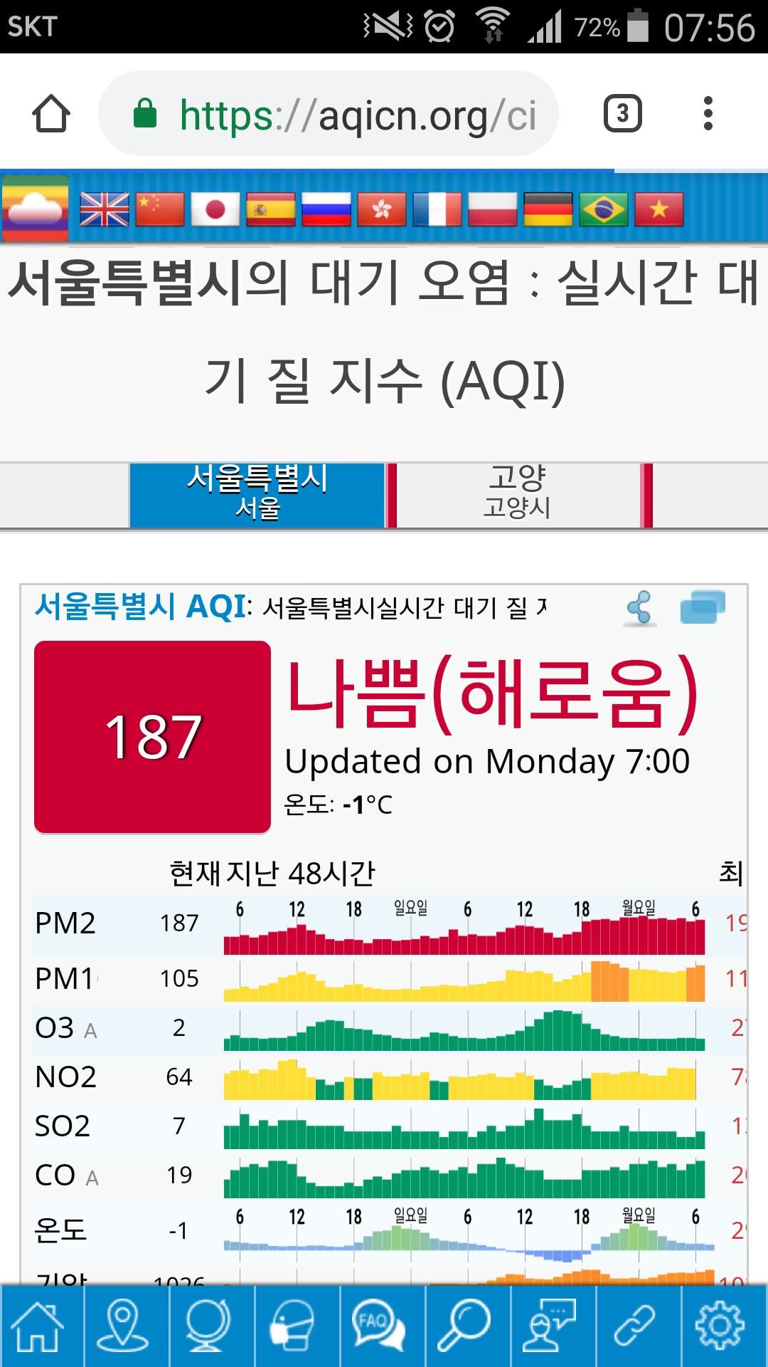 와 187이면 안개가 낀개 아니라 전부 미세먼지겠다 ㅅㅂ 여기가 베이징이야 서울이야 ㄷㄷㄷ