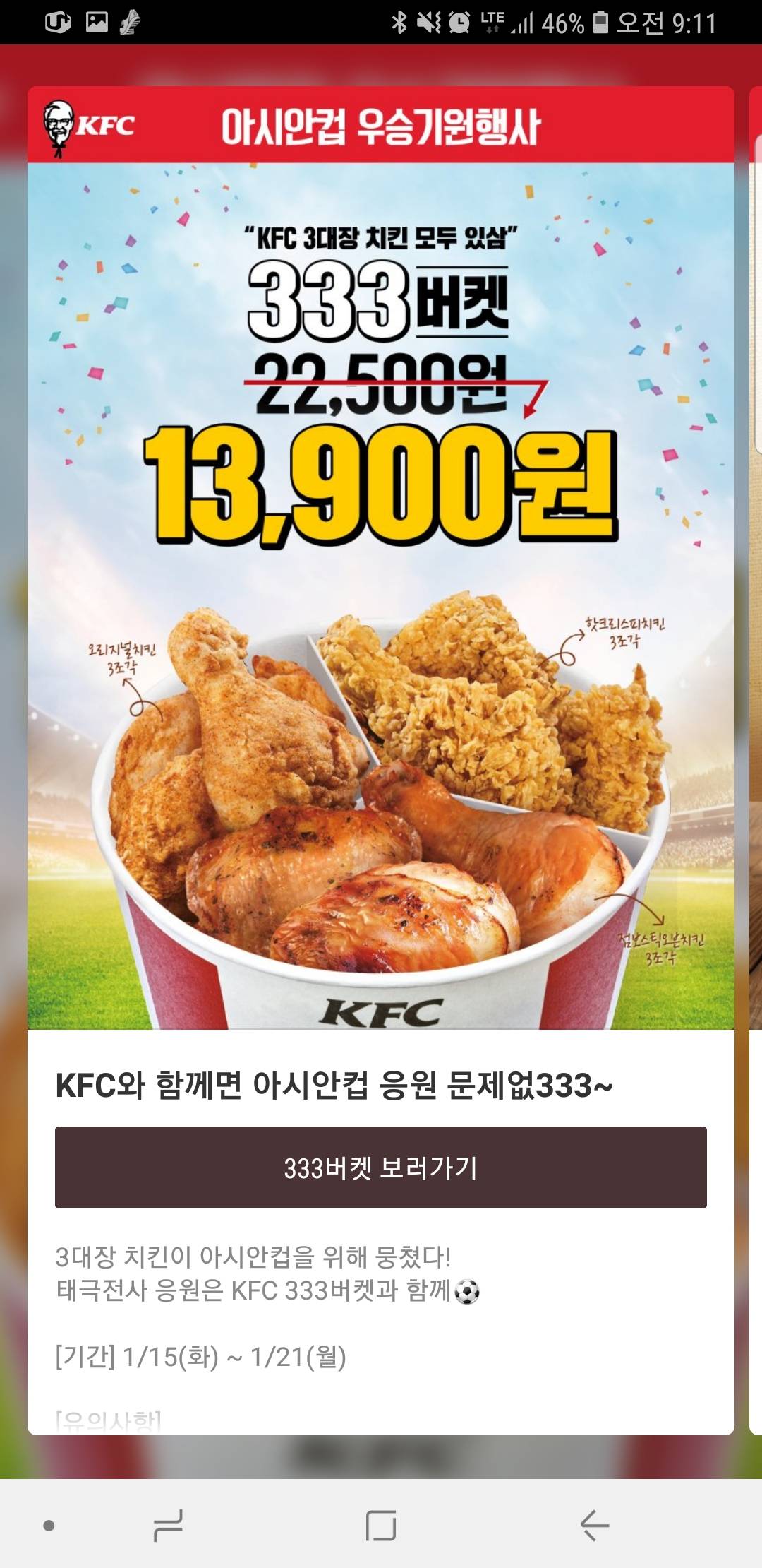 kfc 9조각이면 한마리 될거같은데 근데 칭구들아 kfc는 원래 9시 이후에 1+1함