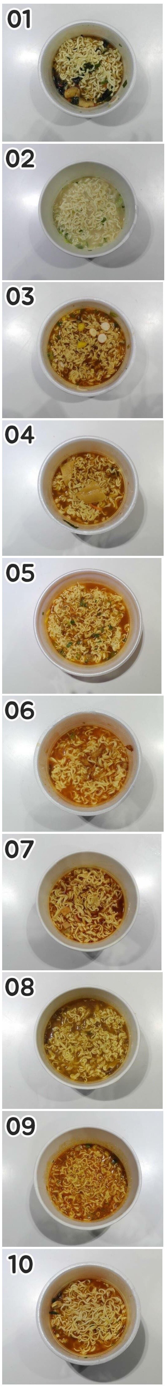 1 튀김우동 2 사골곰탕 3 육개장 4 새우? 5 왕뚜껑? 6 김치 7 ?? 8 이게진인가? 9 참꺠? 진? 10 신라면