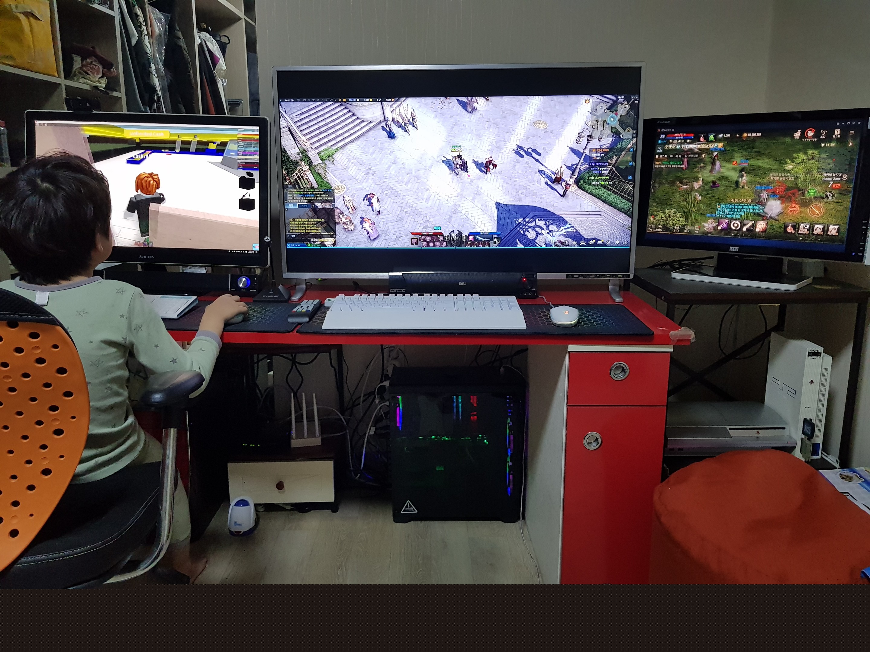현재 좌측에 보이는 모니터가 원래 쓰던 32인치에 qhd 모니터인데