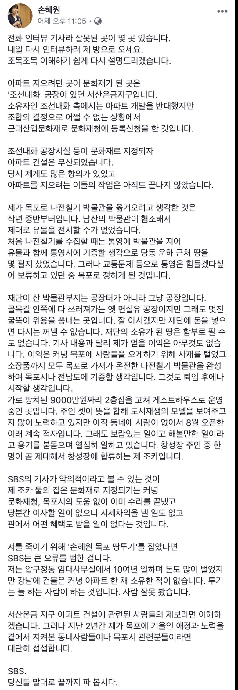 손혜원 이태원에 아파트랑 상가가지고있다는디