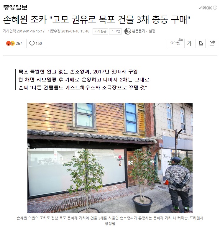 손혜원이 조카 명의로 산 거 겠지 병신년 깜방이나 가라