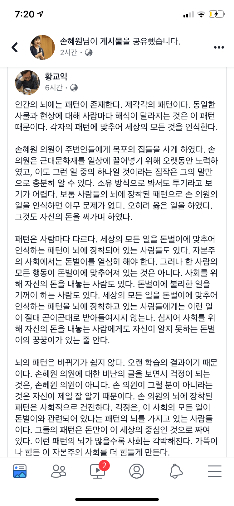 요약하자면 뭐 눈에는 뭐만 보인다고 손의원한테 이의 제기하는 놈들이 투기밖에 모르는거 아니냐 라고 주장하고 싶은건데 존나 쓸데없이 길게 써놨네 ㅡㅡ