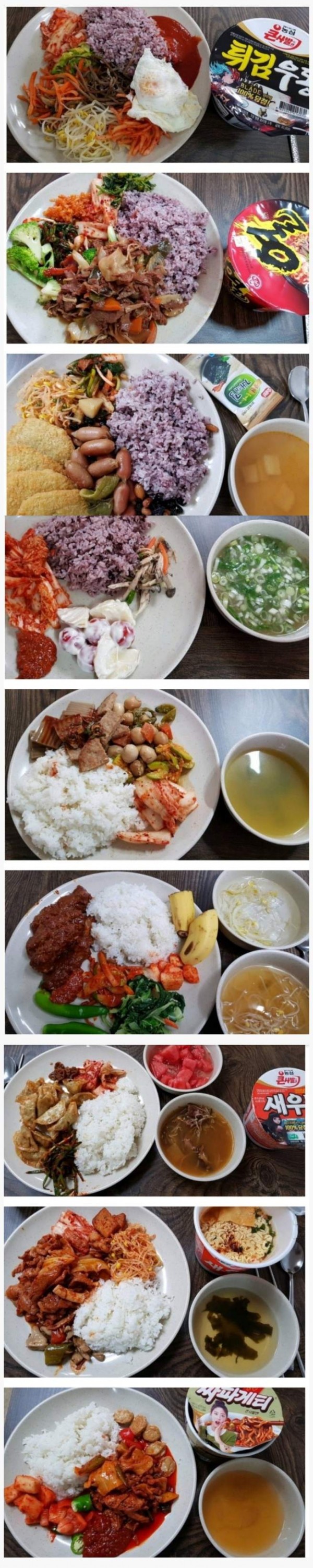 밥 반찬 저렇게 먹고 컵라면까지 먹으면 금방 살찌겠다