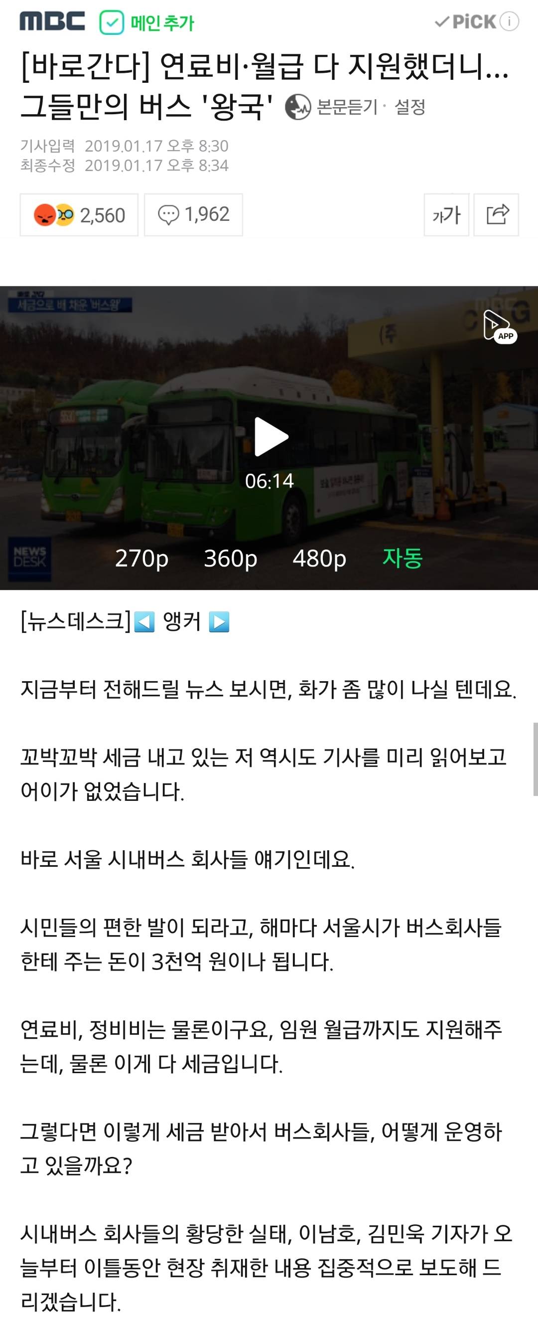 시민의 발이라고 준공영제로 세금퍼줬더니 하는 짓거리보소?