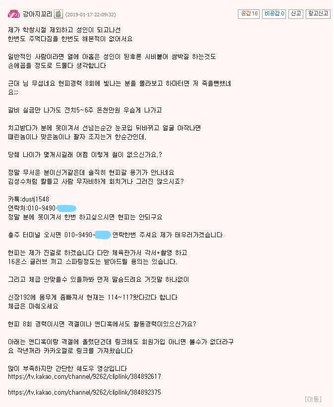 현피선언 받은분이 자기는 현피 진걸로할테니 체급마춰서 링에서 붙자 하니 런