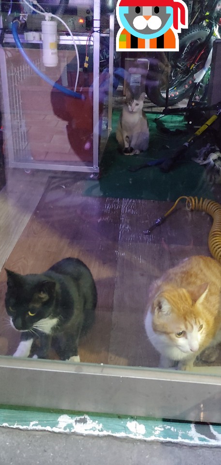 먹고 지나가다 자전거 가게 고냥이들 있길래 찍었음