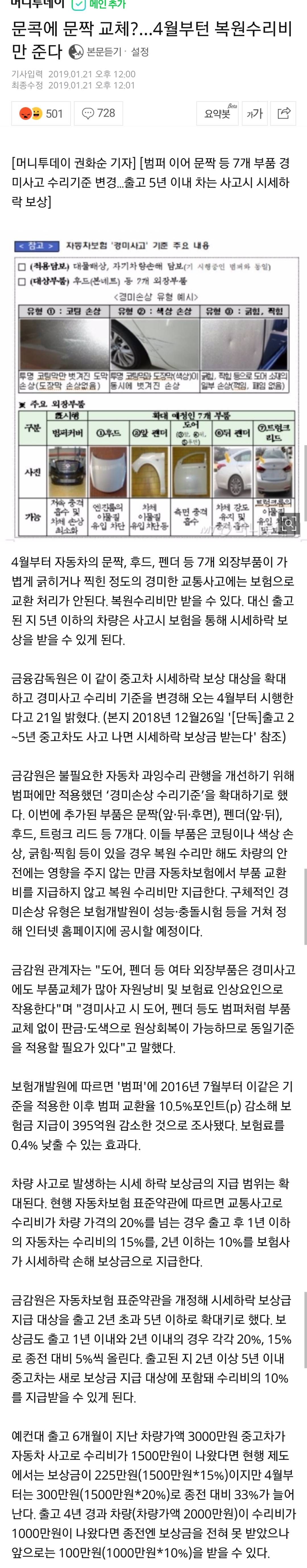 원래 교체가능했나? 나도 판금도색비만 받았는데