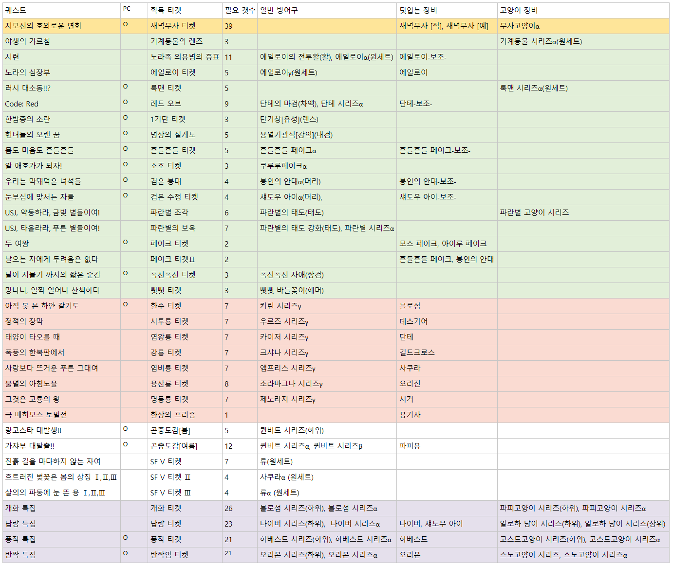 플스꺼까지 섞여있어서 PC판에는 아직 안풀린 이벤트도 포함되어 있으니 위에 이번에 해금되는 이벤트 퀘스트와