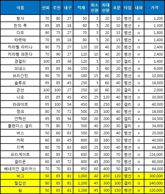 아니네 그리 생각해보니 제목에 시기도 종류도 제각각이야 분류가 배 종류가 아니라 어떤 오락에 나왔던거군 대항해시대 3냐?