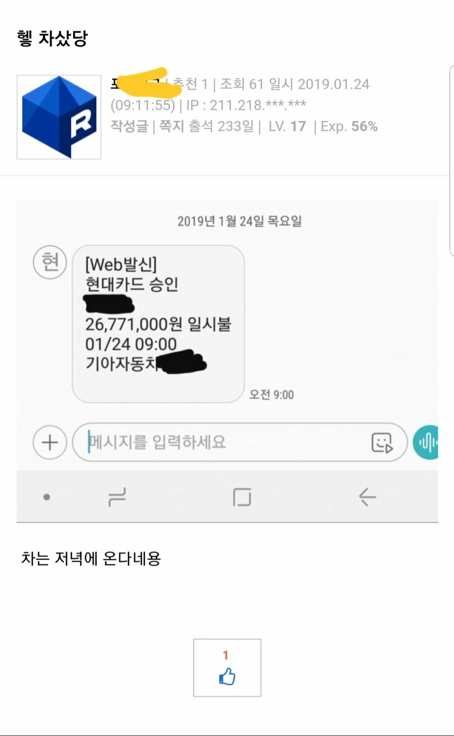 자동차 구매용으로 한도 뚫어줌 ㅎㅎ