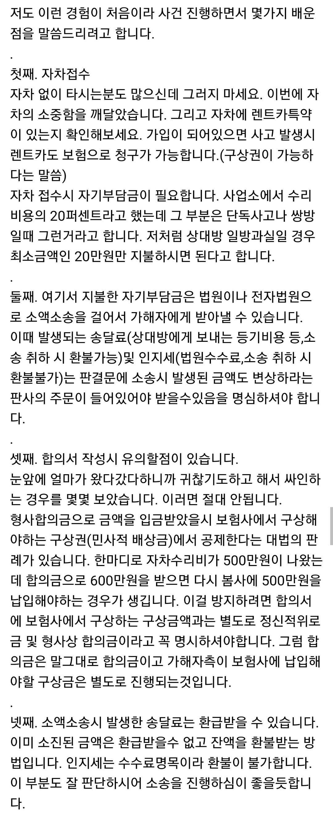 일단 첫째부터 오류가 있어서 이하로는 읽지않음 상대방 일방과실인데 면책금을 왜 내요 ㅡㅡ