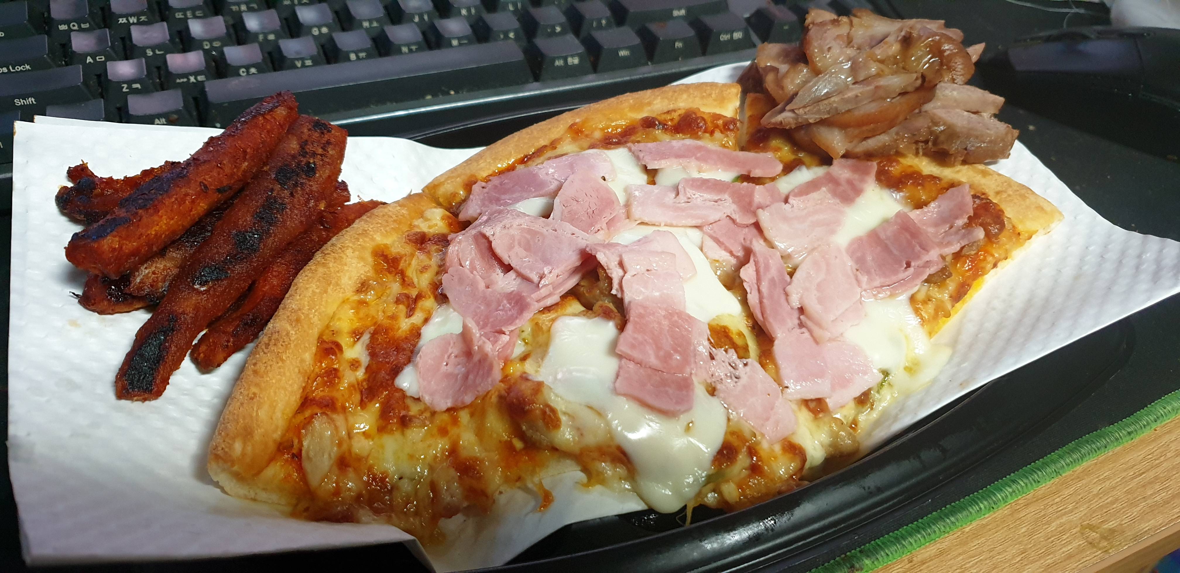 페페로니 피자, 마늘빵, 닭봉8개 이렇게 사왔는데 집에와서 보니 페페로니가 아니고 햄치즈 피자더라 ㅠㅠ 그래도 맛있게 다 먹음 하하