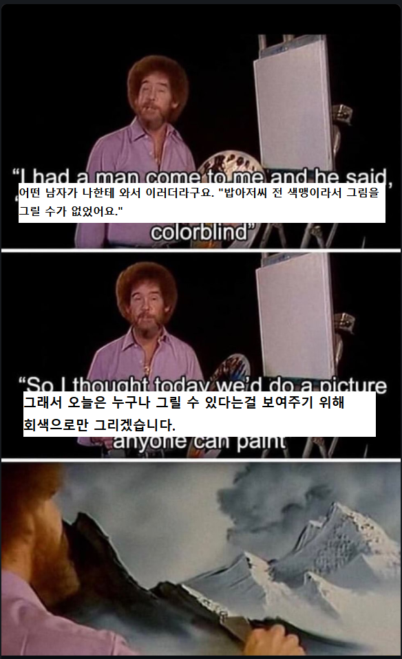 밥 아저씨 : 당신은 색맹이라서 그림을 못그리는게 아니라 그냥 못그리는거에요.