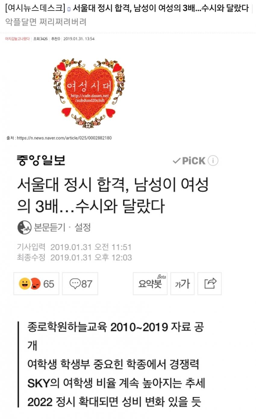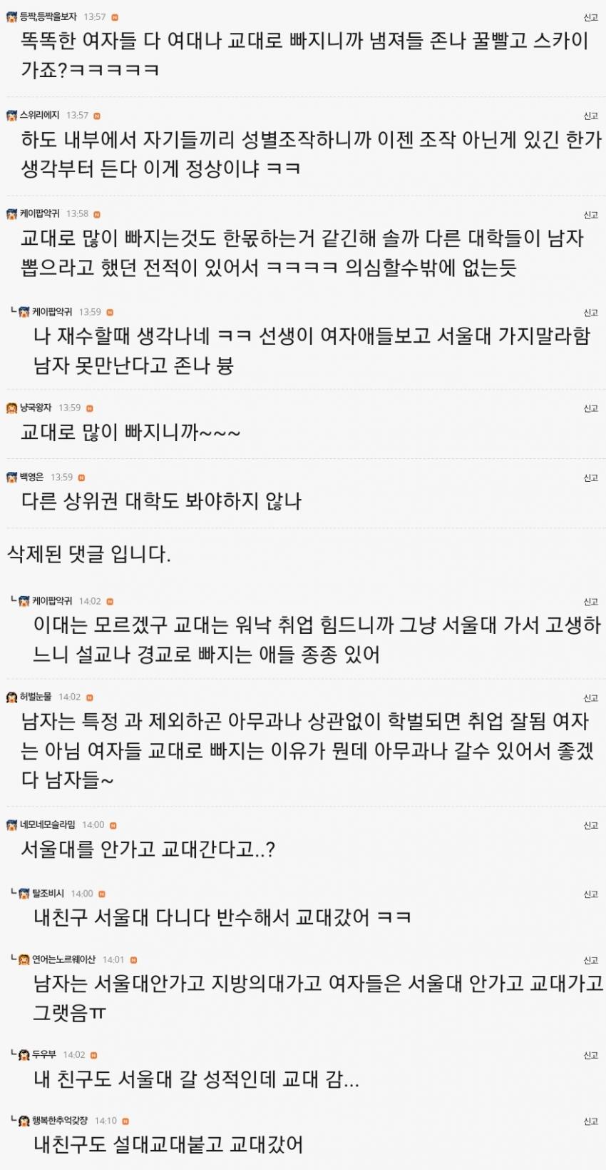 내가 서울대가 아니라 뭐라고 못하겠다고 생각했는데 저기 댓글다는 애들도 서울대 아닐테니 말하자면 저새끼들 정신승리 개오지네 진짜 ㅋㅋㅋㅋ