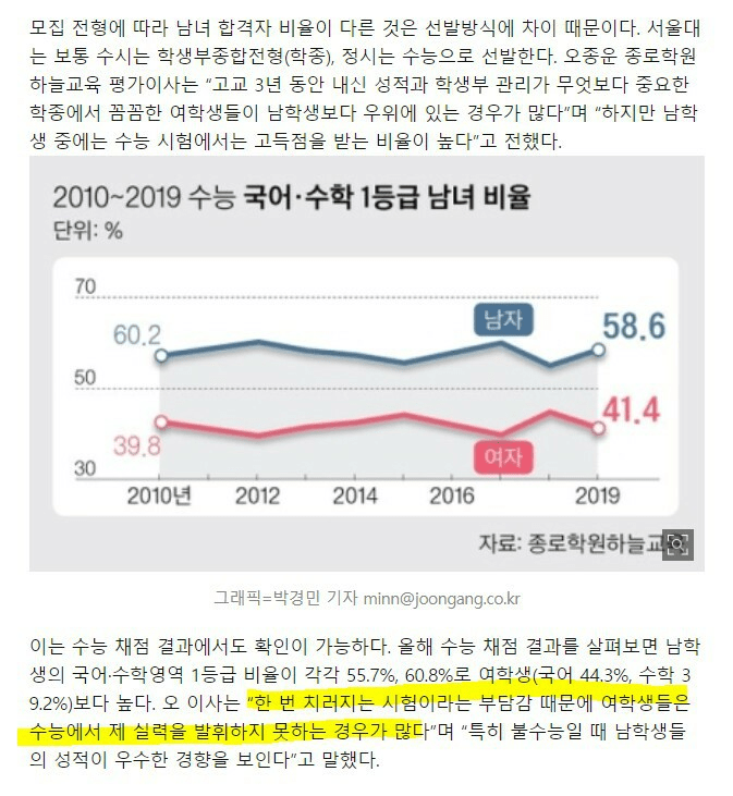 여자들이 교대 가서 서울대 합격률 낮다던 그 분들이나