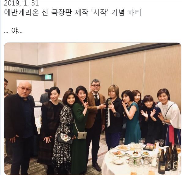 안노랑 잔 부딪치는 분은 신지 성우, 녹색 옷이 레이 성우인 거 같고.