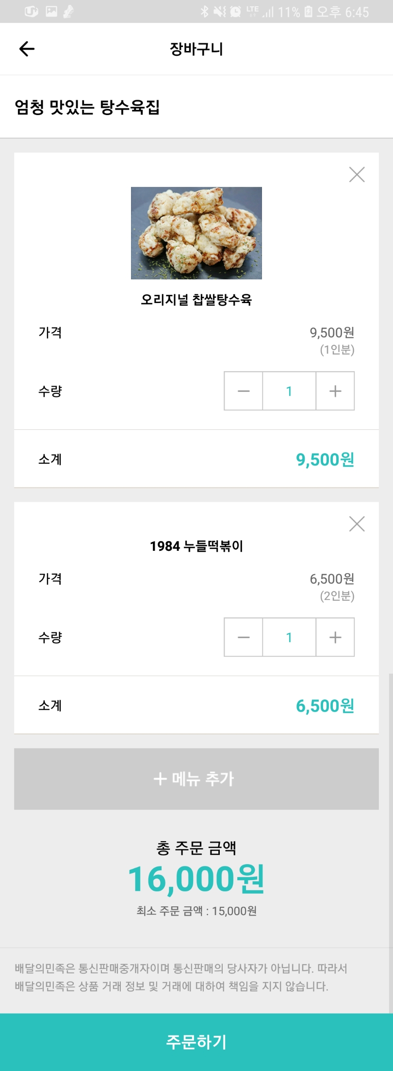 원래 탕슉집에선 떡볶이 시키는게 기본이지