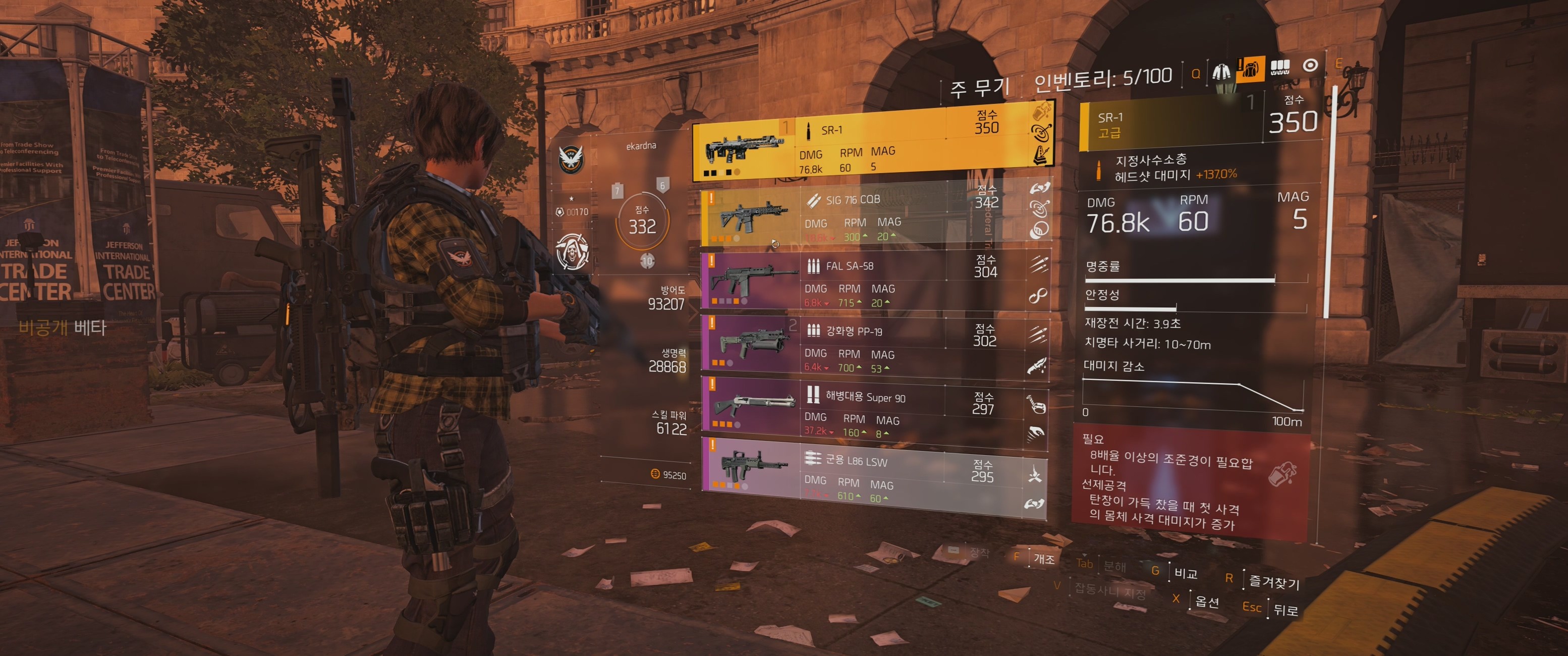 주어진 만렙캐릭들은 이런 템들을 가지고 있고 취향에 따라 무기를 바꿀 수 있게 보라무기도 몇개 넣어줬어