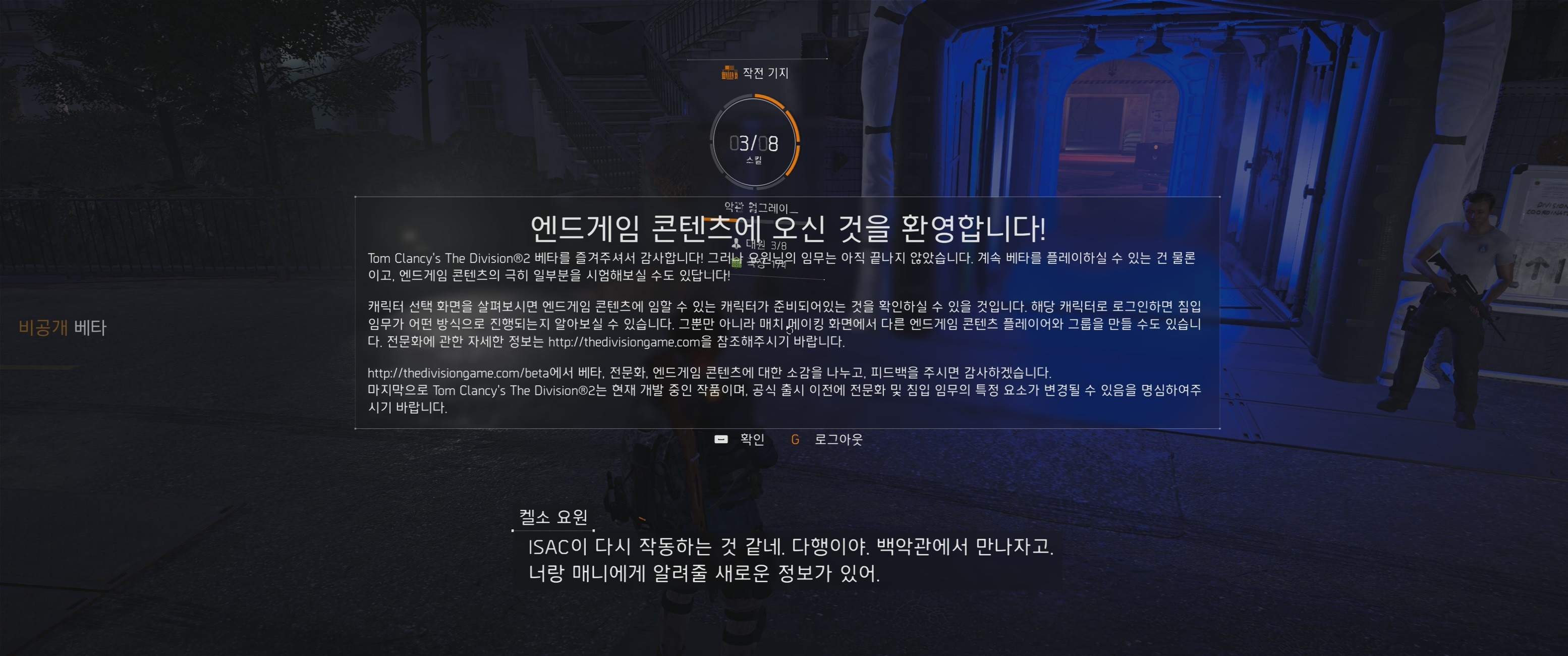 걔네들로 접속해서 이 인던을 깨는게 이번 베타 끝이야
