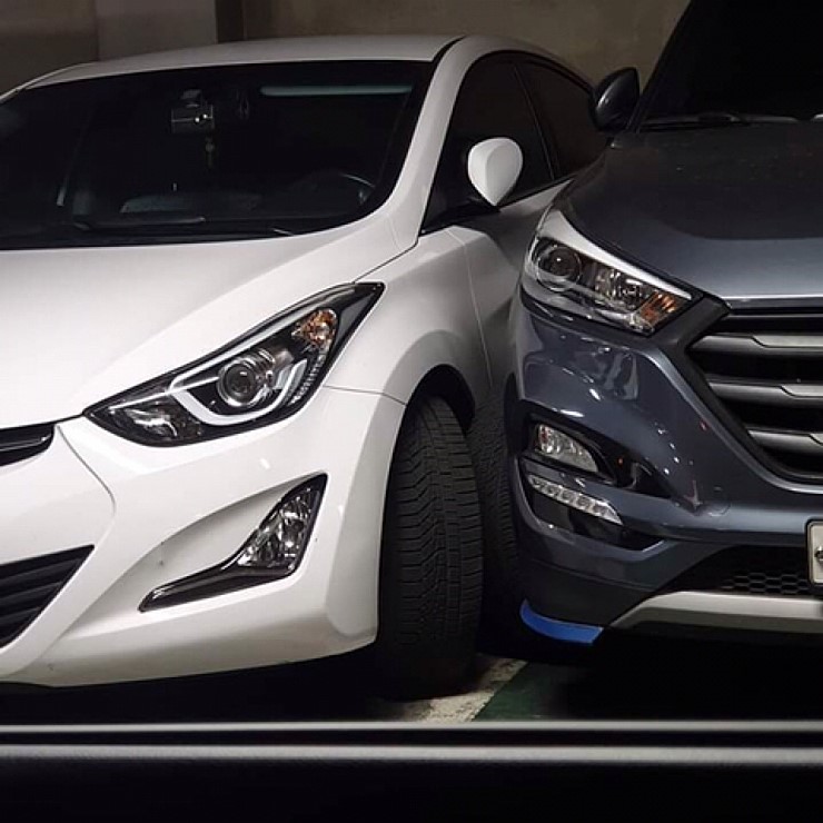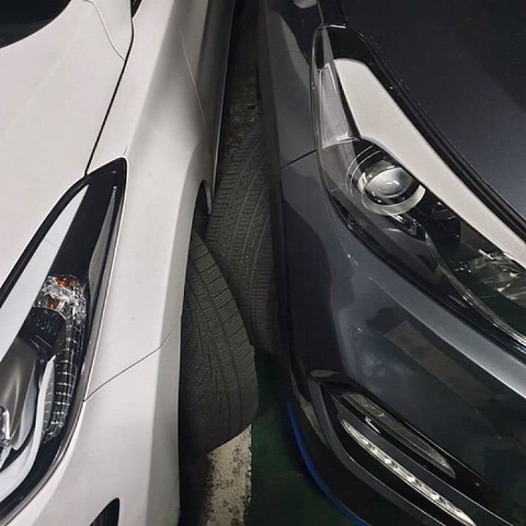 아방은 휀더에 걸리네. 투싼은 그냥 일자로 나가면 나가질거같은데