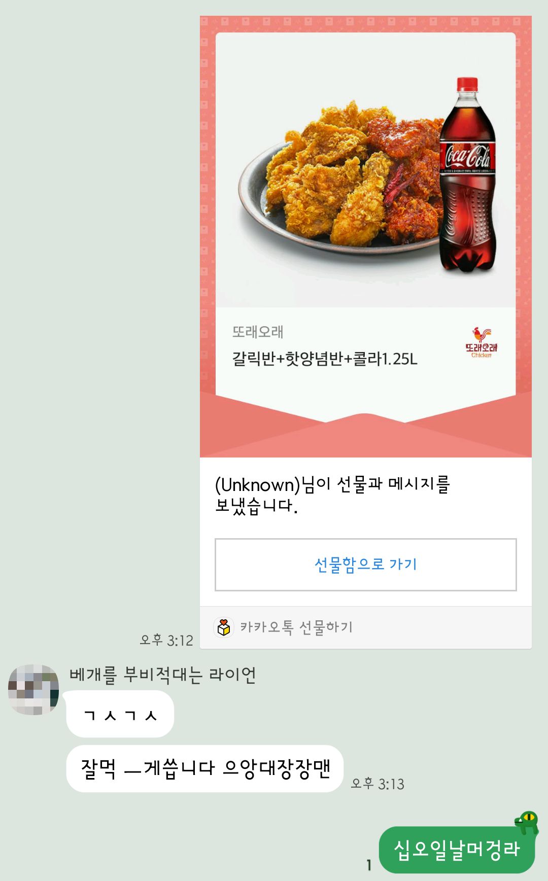 나머지 카톡해라