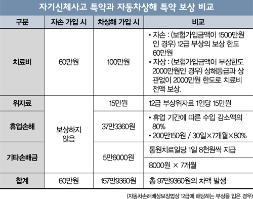 너가 가다 박아도 적용되는건 운전자보험에 자동차사고부상임. 내가 과실 100일때 다쳐도 나오는것, 내가 운전 안하고 있다 사고나서 다쳐도 나오는것. 운전자보험은 사고처리비용 벌금 변호사선임비용 기본으루 잇는데 변호사는 필요없을듯ㅌㅋㅋㅋ 운전자는 만오천원정도면 되고 자기손해 자동차상해 뭐 이런식으로 나뉘는데 정확하게는 상품마다 특약명이 살짝 다른데, 자상이 있어야 본인도 나오고 내 차에 동승한 사람까지도 커버가능.