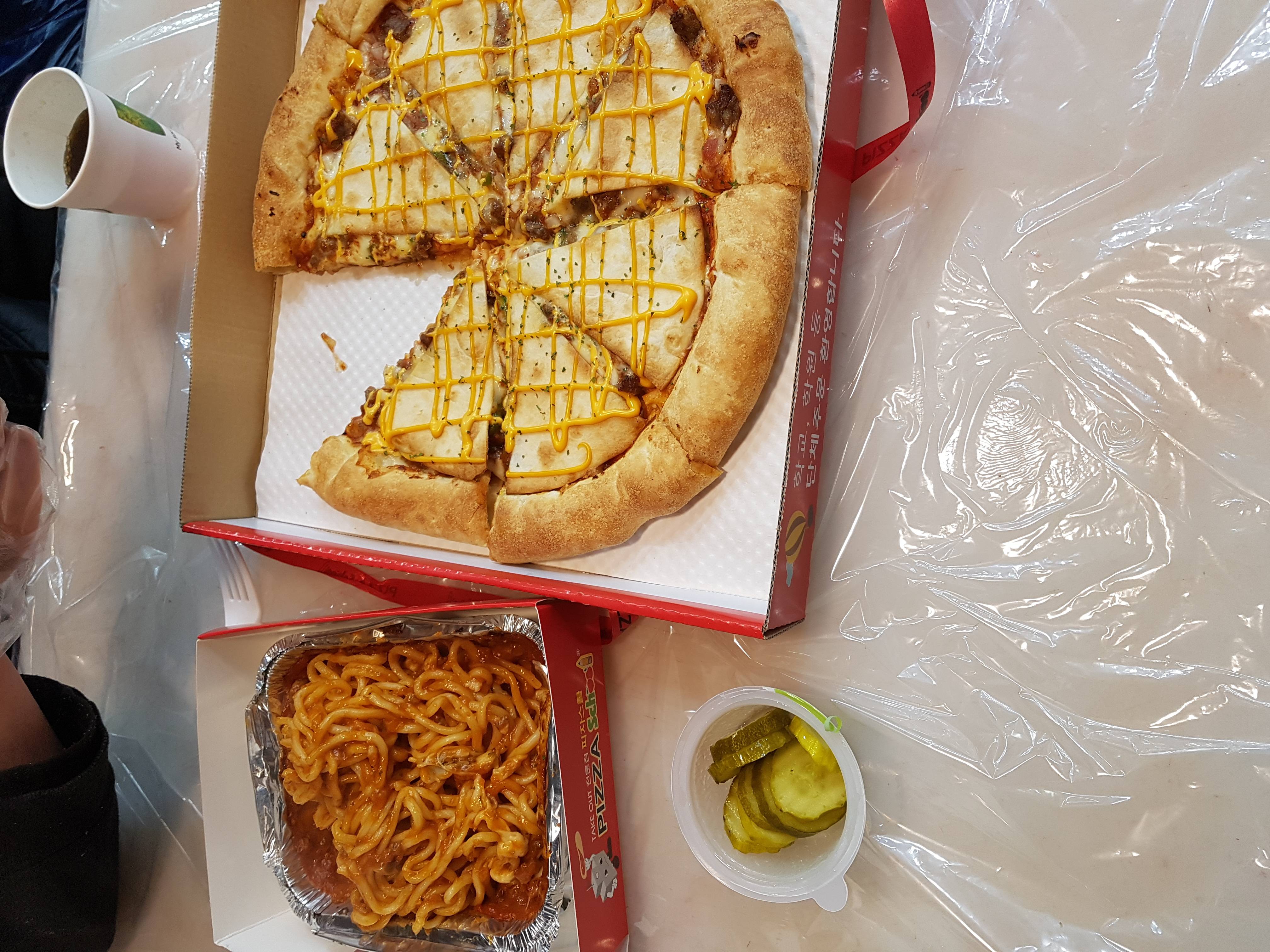피자위에 도우같이생긷 토핑은머지?