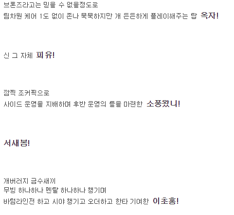 서새봄은 그냥 못하면 상관없는데 말투가 좀 아니꼬워서 가중처벌 받은게 있긴함 ㅋㅋ